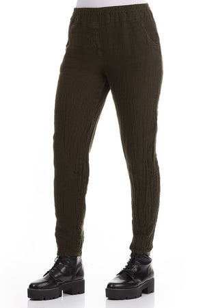 Narrow Khaki Mélange Linen Pants