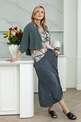 Elevate your wardrobe with this crinkled skirt, featuring a unique ruched detail that adds a touch of sophistication to its flowing silhouette. Designed with a flattering wrap-inspired effect, it combines comfort and elegance effortlessly.