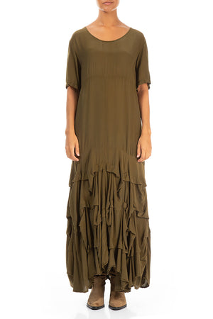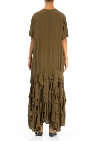 Ruffle Khaki Silk Bamboo Maxi Dress