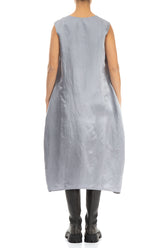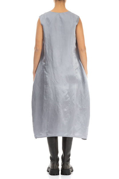 The dress combines effortless elegance with a playful silhouette. Crafted from airy glossy silk, its soft grey tone and voluminous balloon shape create a timeless, flattering look.