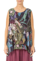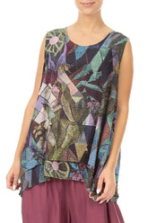 Sleeveless Layered Art Mosaic Textured Silk Blouse