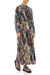 Tiered Tie Up Art Mosaic Silk Bamboo Dress