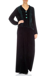 This elegant silk velvet jacket, featuring a refined three-button design and two rows of front tucks, is a timeless wardrobe staple you’ll cherish for many seasons. Layer it over a silk blouse and wide-leg trousers, or pair it with a dress to add a touch of effortless glamour to your look.