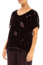 V-Neck Patterned Burgundy Silk Velvet Blouse