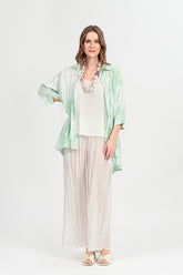 The classic white colour drapes beautifully over soft, lightweight silk. These timeless and versatile wide-leg, flowy trousers are perfect for any occasion, offering both elegance and comfort. Crafted from pure crumpled silk, they combine effortless style with a naturally textured finish.